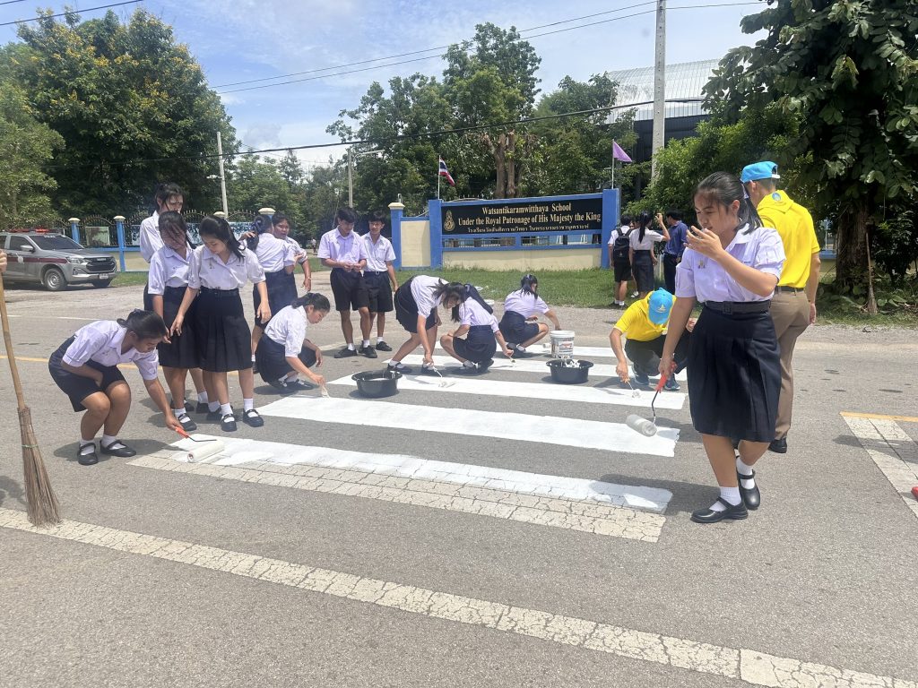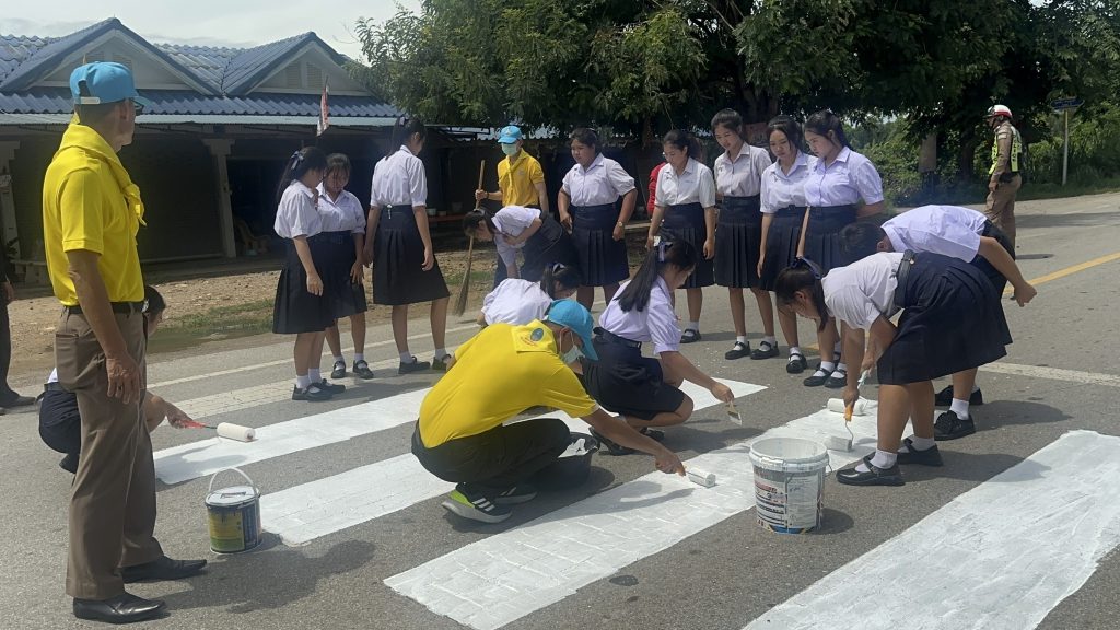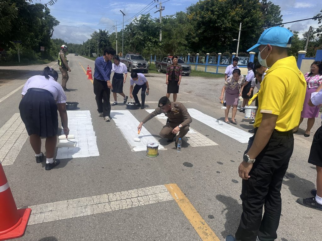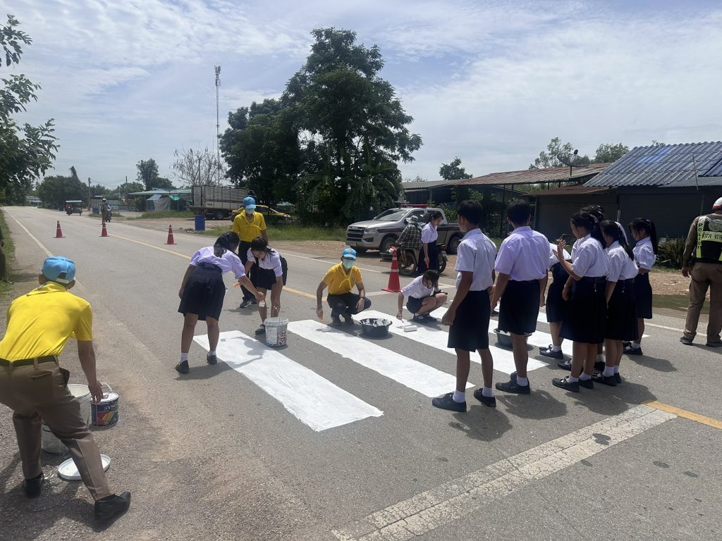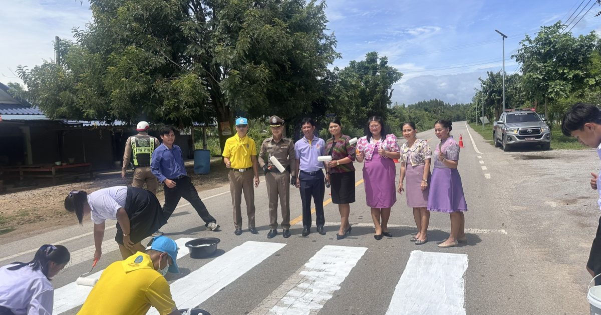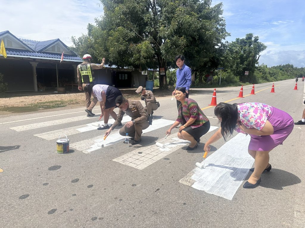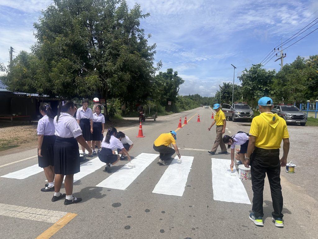 ดำเนินโครงการ จิตอาสาพัฒนา ทาสีทางข้าม (ทางม้าลาย) ให้เห็นเด่นชัด เพื่อป้องกันอุบัติเหตุที่อาจจะเกิด