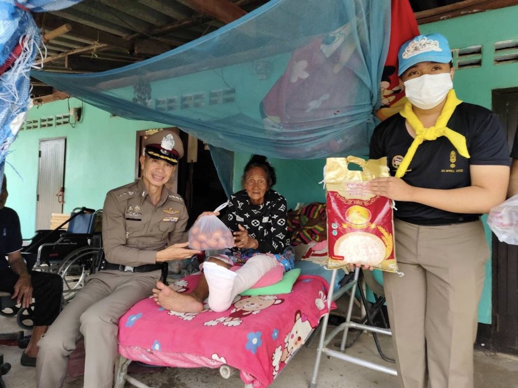 พร้อมทั้งได้มอบของบริโภคที่ใช้ประจำวัน ไข่ไก่ ปลากระป๋องและข้าวสาร ให้กับประชาชนผู้พิการภายในพื้นที่ นางปราณี สายวิเชียร และสามีที่ป่วยเป็นอัมพฤกษ์ ณ บ้านเลขที่ 32/1 หมู่ 4 ต.ทุ่งหลวง อ.ปากท่อ จว.ราชบุรี