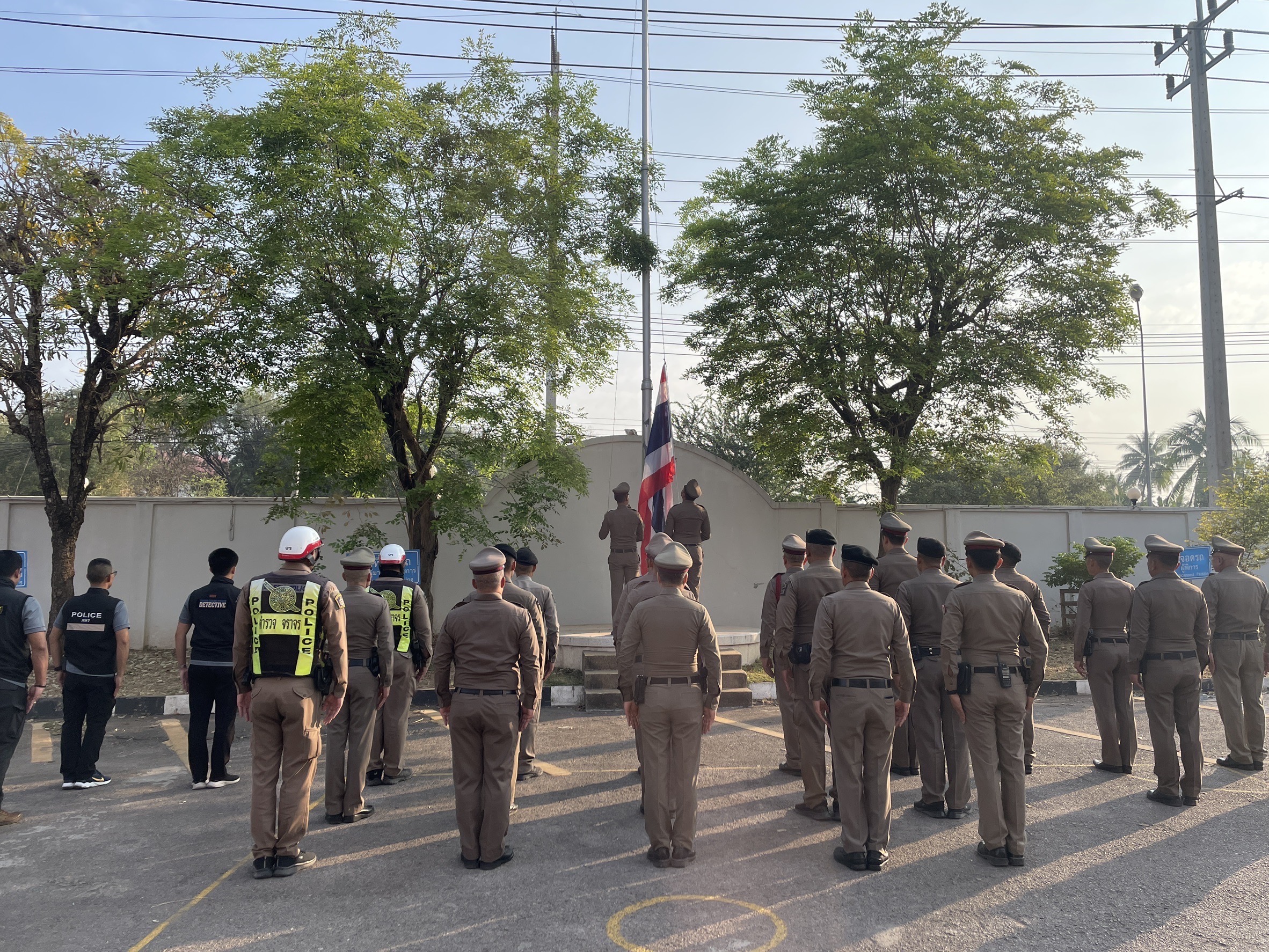เข้าแถวเคารพธงชาติ พร้อมรับฟังคำชี้แจง